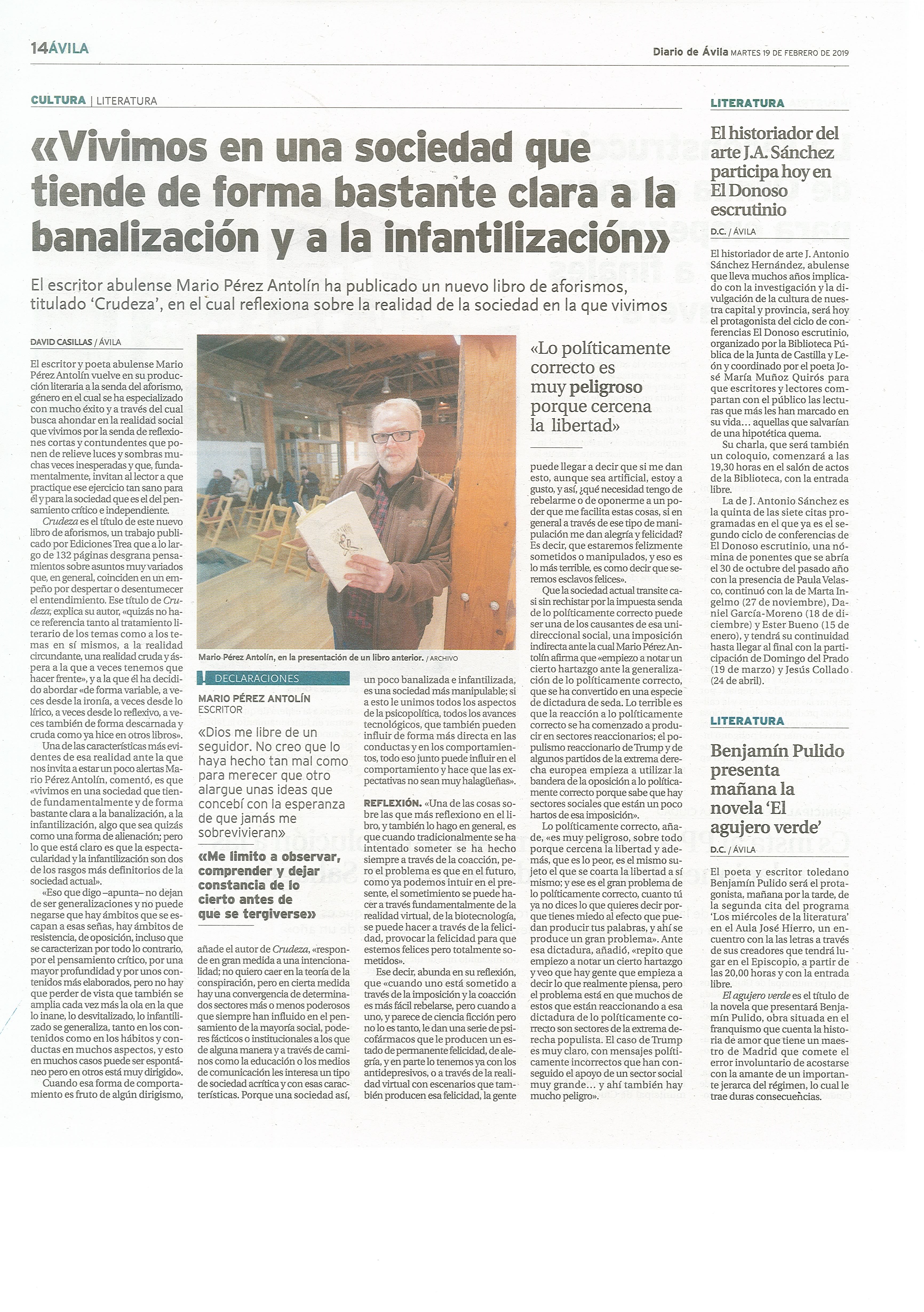 Entrevista en el Diario de Ávila sobre "Crudeza"