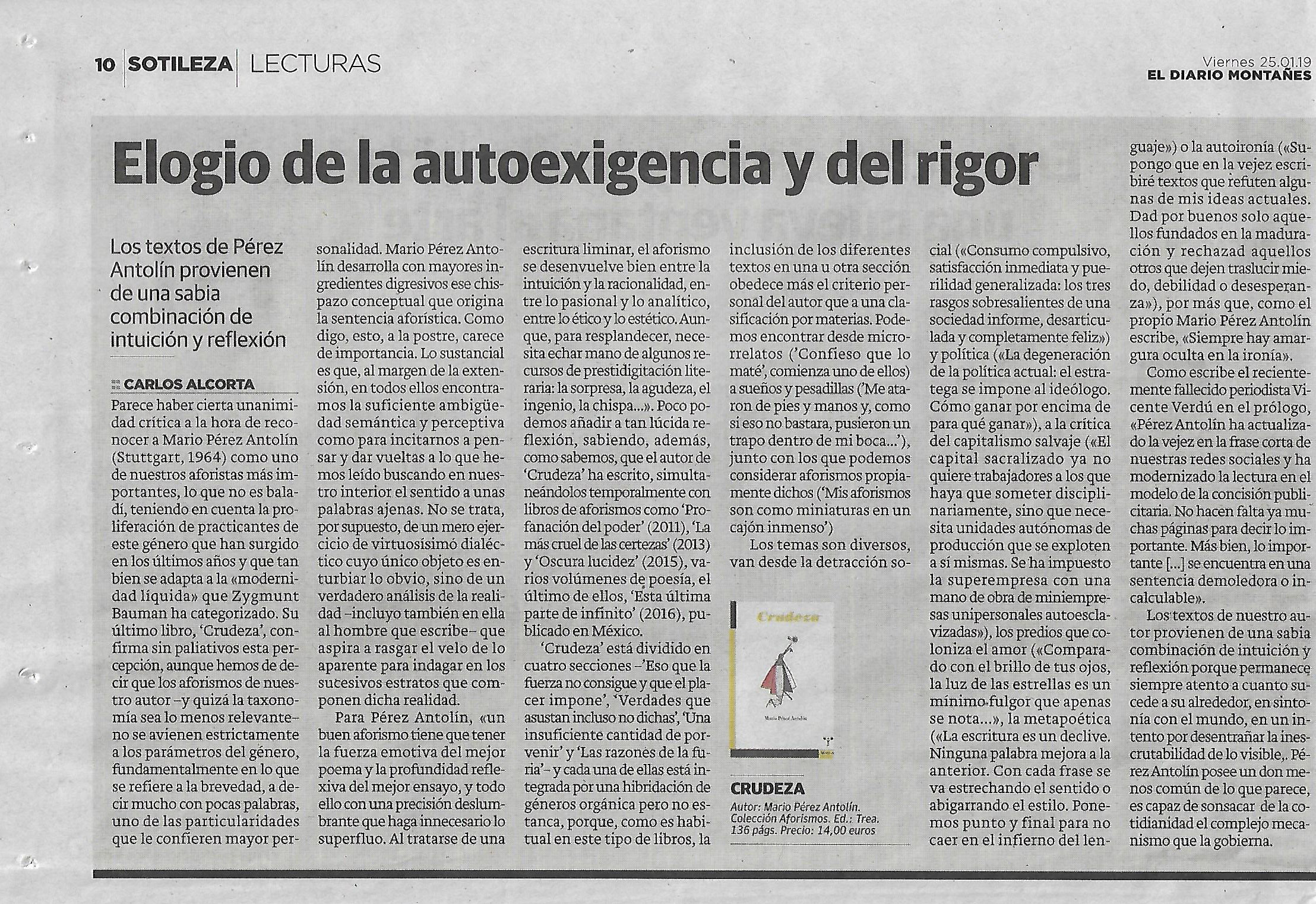 Reseña de Carlos Alcorta en El Diario Montañés sobre Crudeza