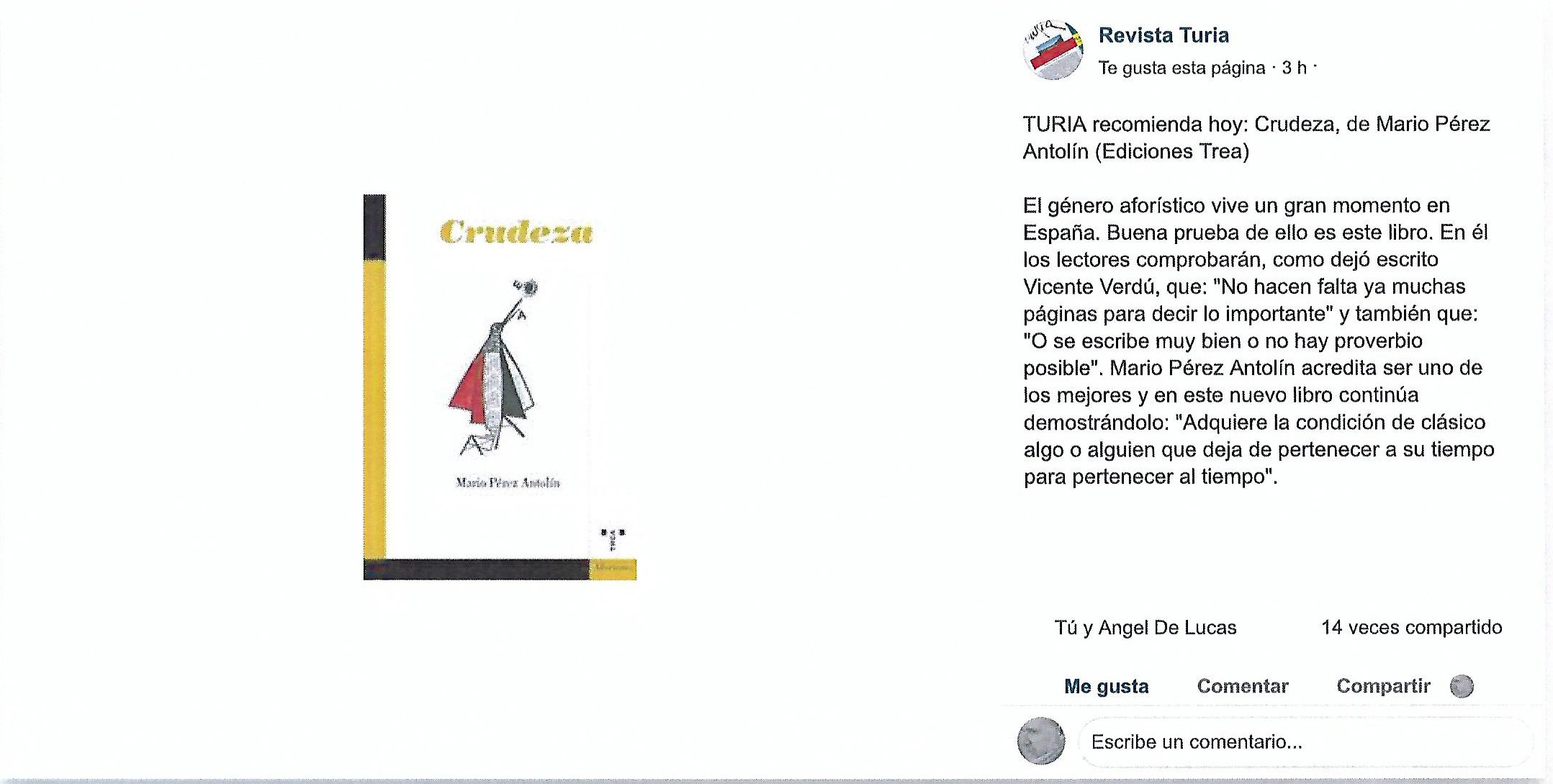 La revista Turia recomienda Crudeza