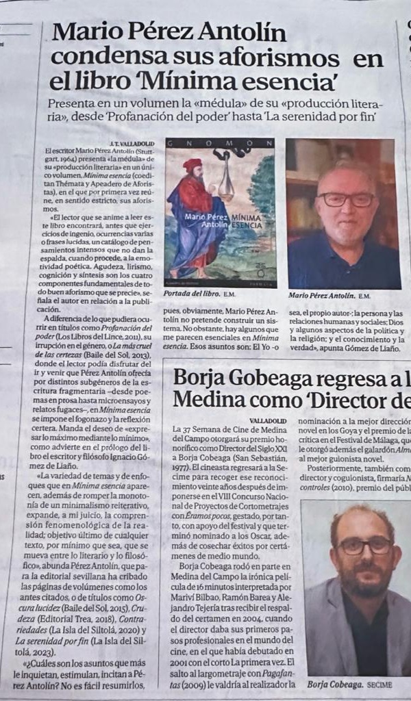 "Mínima esencia" en el Diario de Valladolid- El Mundo. 26 de enero de 2024
